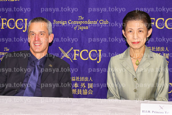 【気候変動:PasyaImages:3月17日】スチュアート・ブッチャート、バードライフ・インターナショナル主席研究員と、高円宮妃久子殿下、バードライフ・インターナショナル名誉総裁が、東京の日本外国特派員協会で会見。世界の急激な気候変動と、環境のメッセンジャーの鳥について話す。