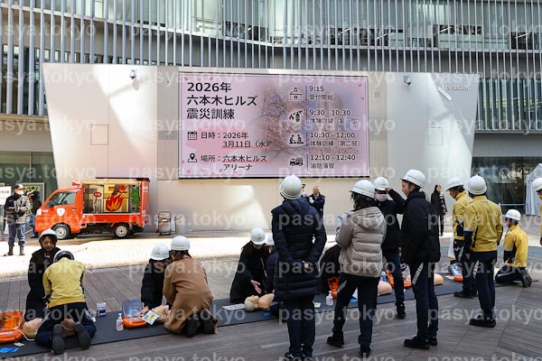 【Roppongi Hills:PasyaImages:3月11日】六本木ヒルズ防災訓練。東京、港区、六本木で開催。東日本大震災から15年、首都圏の地震災害に備える訓練の様子。