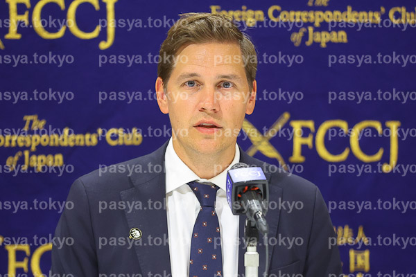 【ノーベル委員会:PasyaImages:7月28日】ノルウェー・ノーベル委員会のヨルゲン・ワトネ・フリドネス委員長が東京の日本外国特派員協会で講演。2024年のノーベル平和賞は、広島と長崎の原爆の生存者を代表の日本原水爆被害者団体協議会(日本被団協)に授与。