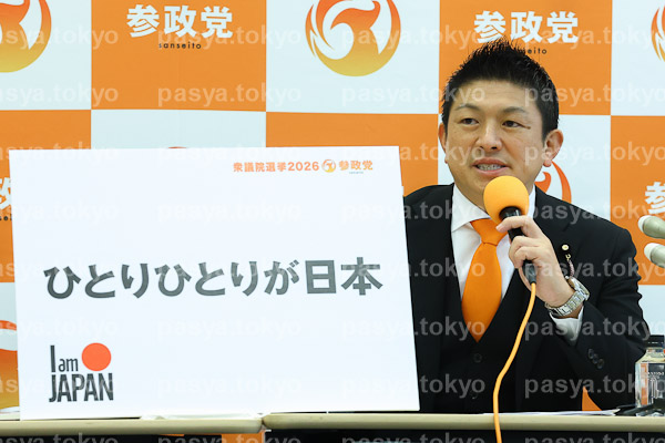 【神谷宗幣:PasyaImages:1月23日】参政党の神谷宗幣代表が、東京・国会で記者会見を開催。衆議院選挙2026のテーマ『I am JAPAN』発表。