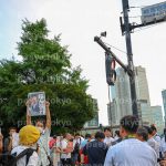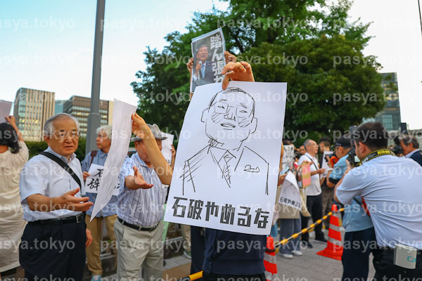 【石破首相2025:PasyaImages:7月25日】東京・永田町、総理官邸前。石破首相を応援するデモ活動。続投を求めるスタンディングデモで、プラカードを掲げた人々が集まる。
